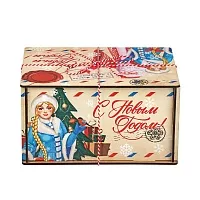 Интересный вариант новогоднего подарка – «Посылка из Устюга (Полезный состав)». Он представлен в разделе Дерево. Отлично подойдет на подарок в 2026 году с символом Лошадь. Внутри такого презента находится кондитерский набор весом 1000 граммов.